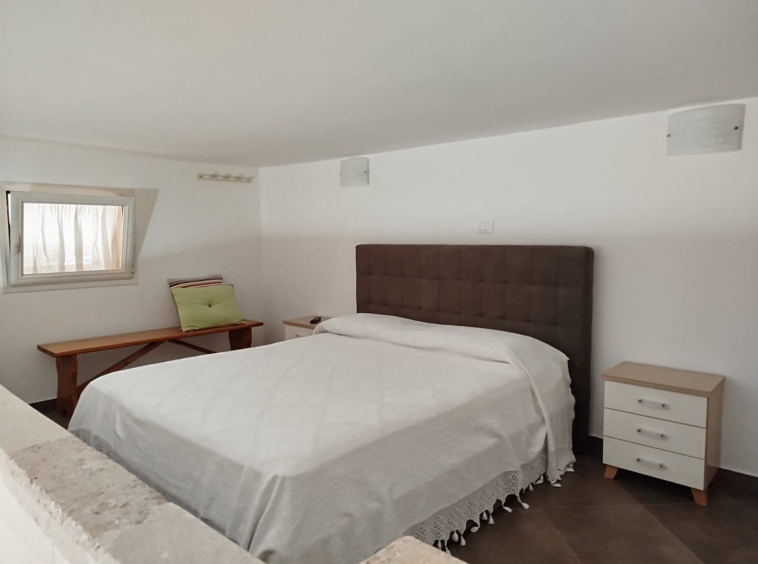 È composta da: ingresso/soggiorno, zona pranzo, cucinotto, due camere da letto ed ampio bagno; verandina antistante, scoperto sul retro con doccia esterna ed area solare di proprietà accessibile con scala esterna.
